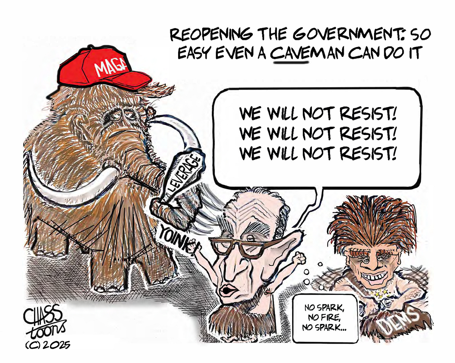 Cloaked in the language of “norms,“ decorum and good governance jargon this party has spent better part of the last 45 years pissing down our backs and telling us it’s raining. That might’ve “worked” when there was competent leadership, but now? Not so much. Hopefully Chuck gets a clue and decamps down to Flatbush in the subtropics, aka Boca Raton, so that the rest of us can get on with fighting the good fight without getting tripped up and stabbed in the back