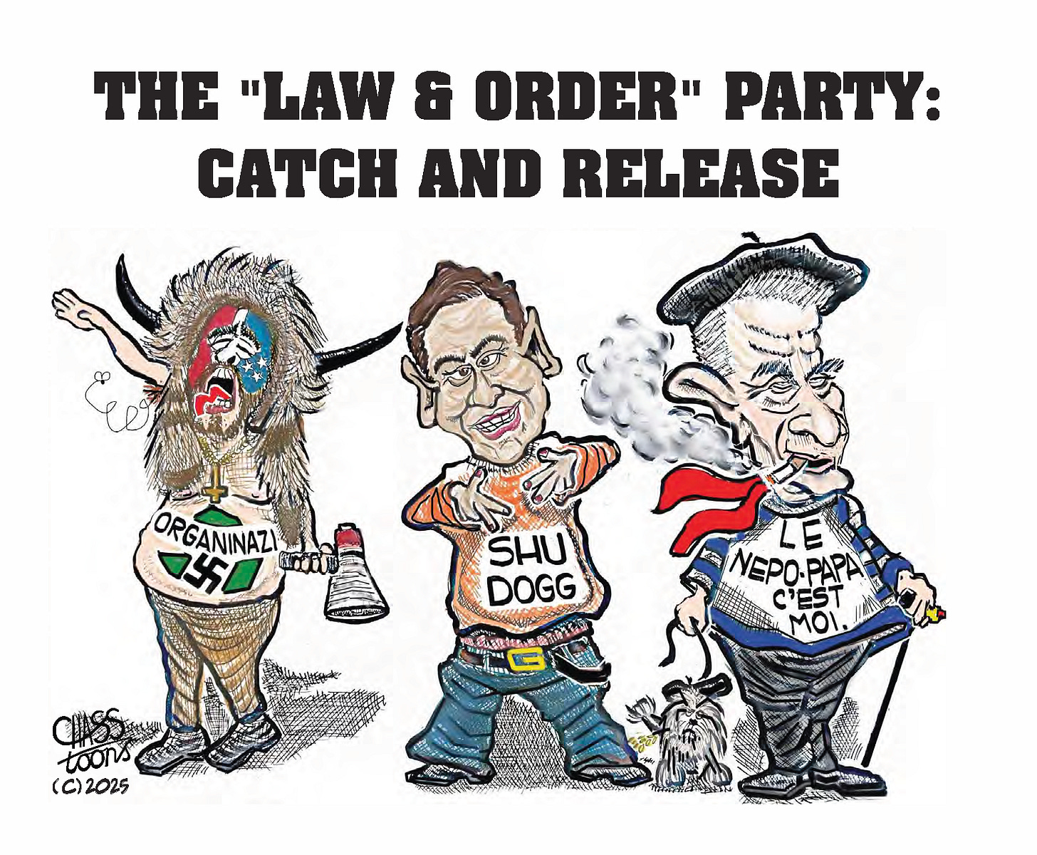 One of the bigger, hairier, and no more hilarious prevarications is the GOP claiming the “Law and Order” mantle. Thanks to their furious, no holds barred collective tongue bathing of the sphincter of the Dear Leader they have abandoned any pretense of going after criminals never mind remaining committed to upholding the rule of law.